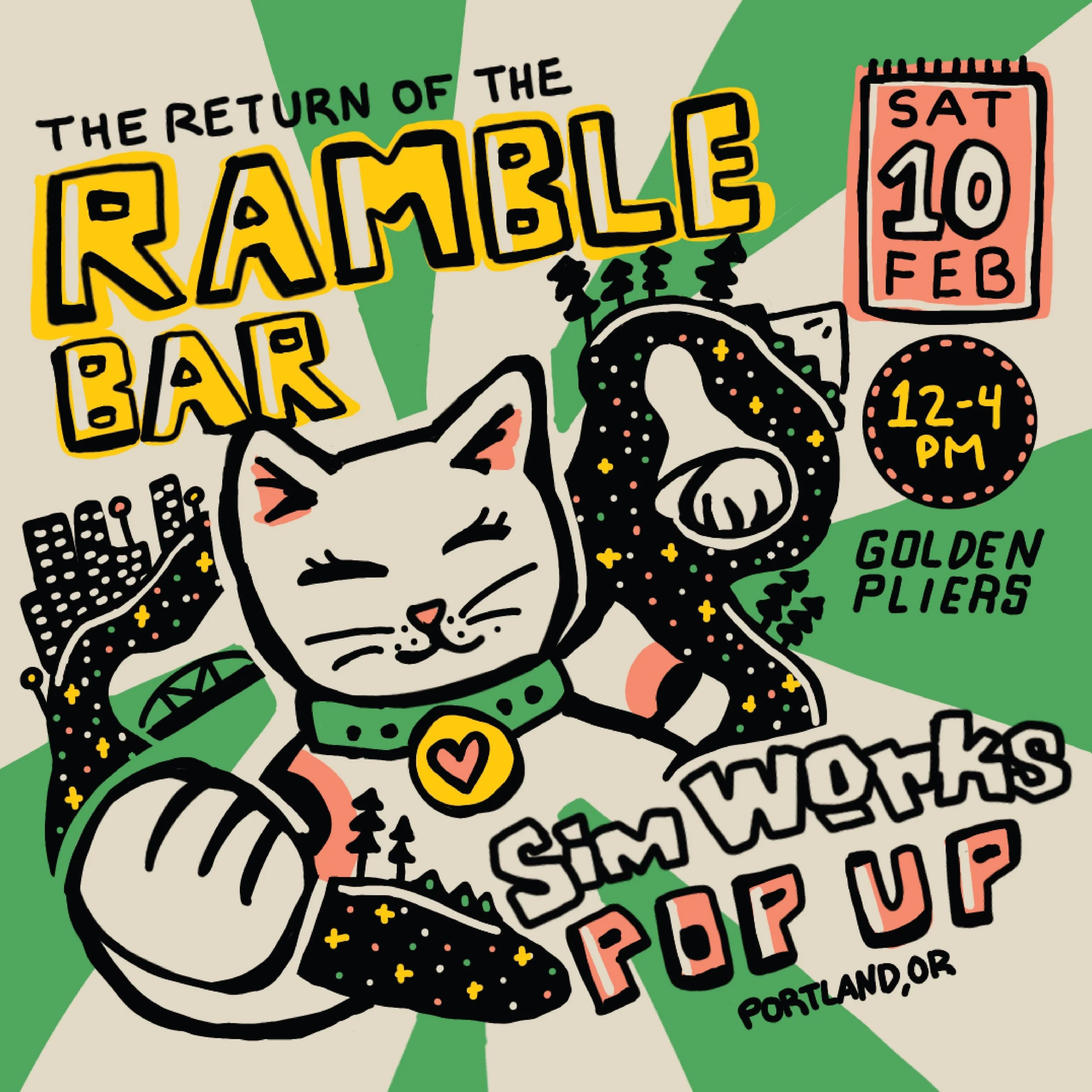The Ramble Bar will be available for purchase at the event (and thereafter, until it’s gone), and our buds from Sim Works will be in the shop with a selection of attractive and well-made bike goodies, too. Snacks and drinks will be available. Hope to see you there!